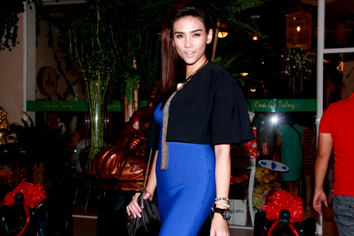 Người đối diện dễ dàng nhận ra vẻ mặt của cô vẫn còn lộ rõ sự mệt mỏi và hốc hác. Giải vàng Siêu mẫu chưa thể tươi tắn và rạng ngời như mọi khi xuất hiện trước đây. Lối trang điểm theo tone lạnh phần nào giúp cô trở nên lạnh lùng và cá tính.